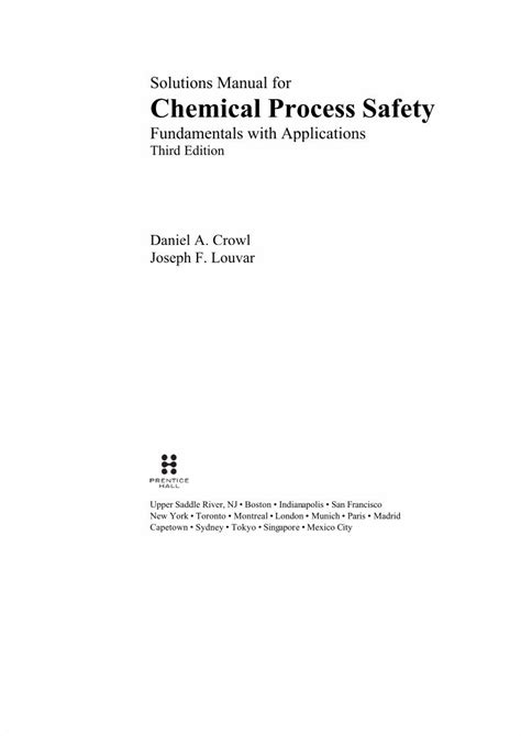 Read Online chemical process safety 3rd edition solution manual Reader online is a convenient and frugal way to read chemical process safety 3rd edition solution manual you love right from the comfort of your own home. Yes, there sites where you can get Reader "for free" but the ones listed below are clean from viruses and completely legal to use.